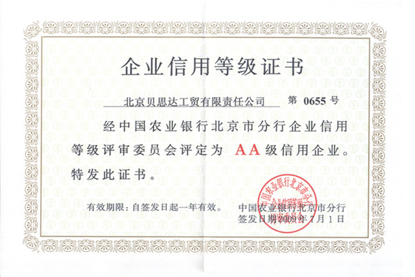 • 企業信用等級證書